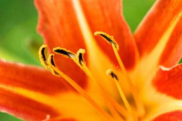 I used a kick light to pull up the deep shadows in the middle of the flower. A gorilla pod (a simple $10 mini-tripod/flexible grip sort of thing) let me get the kick light where I needed it. After some trial and error (and some laying in the dirt and cursing the glare on my view screen while simultaneously really appreciating the view screen since my older camera doesn’t have one), I got this image below. With the aperture set to f11, the depth of field is good. A few of the stamen are out of focus, and I wonder if another stop or two would have captured them. I didn’t notice them while I was taking the image. Still, pretty pleased with this image.