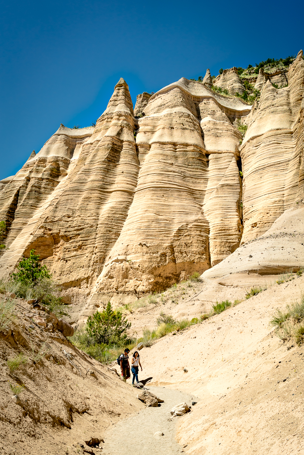 Kasha-Katuwe Tent Rocks National Monument is between Santa Fe and Albuquerque. It’s only about a 3 mile hike, with only 600 feet in elevation rise. If you want to visit Tent Rocks, arrive early, before the heat and the tour groups, and bring lots of water.